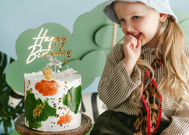 Een mooie detail dat de taart klaar maakt voor een wild verjaardagsfeest.